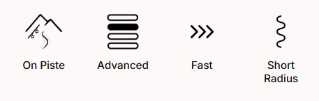 Ein präziser Ski, der entwickelt wurde, um die Piste flüssig zu erkunden. Kontrolle bleibt konstant, das Gefühl auf dem Schnee stets beherrscht.