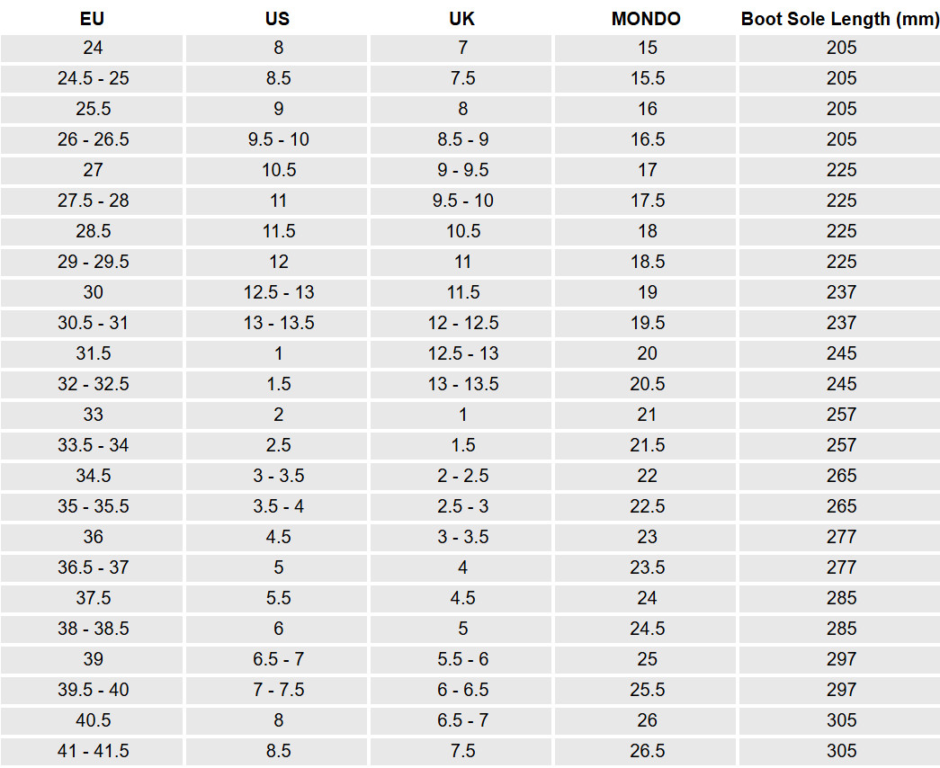 Wählen Sie die Größe anhand der Mondo Point-Messung und lassen Sie ein wenig Platz für das Wachstum. Für mehr Genauigkeit sollten Sie den Head Junior Skischuh J2 2026 im Geschäft mit speziellen Skisocken anprobieren.