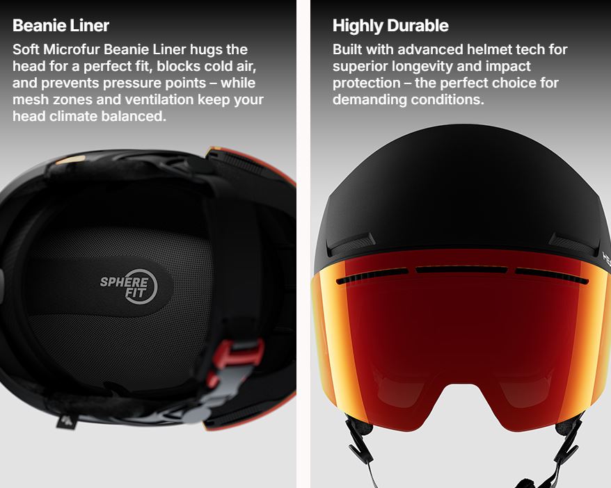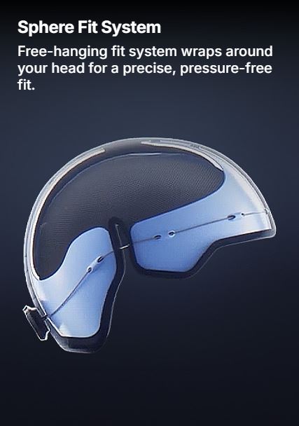 - Sphere Fit System: ermöglicht eine präzise Anpassung um den Kopf für stabilen Halt, auch in Bewegung.