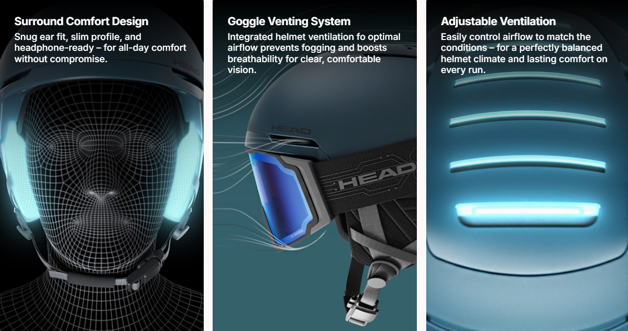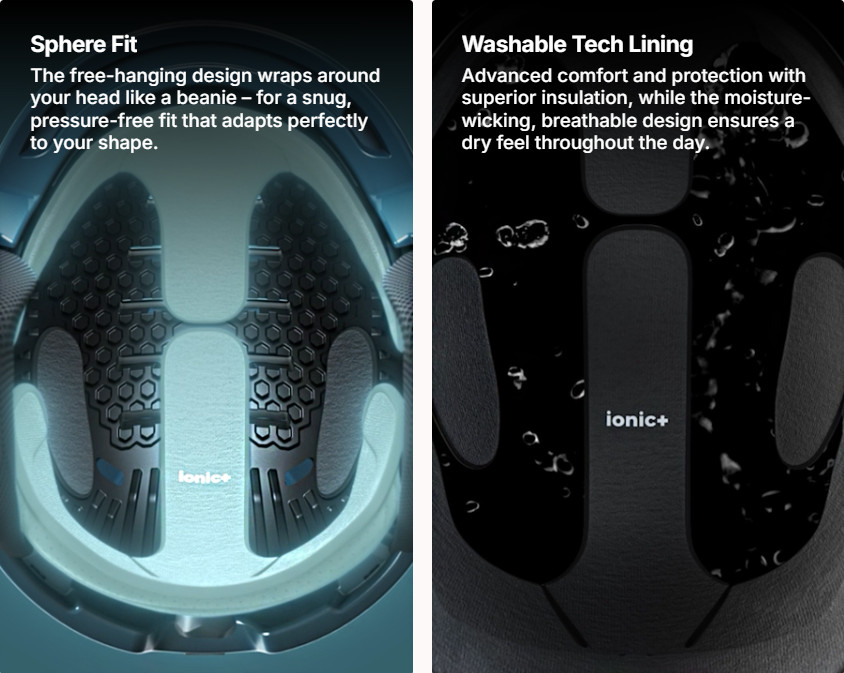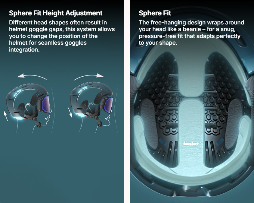 • Sphere Fit-System: passt die Ummantelung des Schädels rundherum mit integrierter vertikaler Einstellung an.