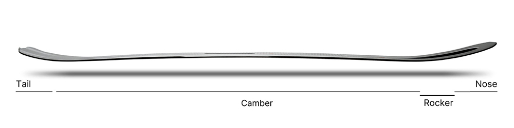 - Surfy CamRock Profil : Mischung aus Camber und Rocker vorne für mehr Auftrieb und Schwung in den Bergen.