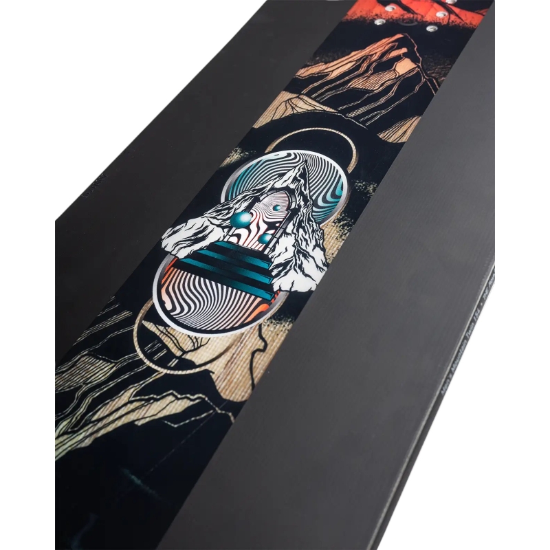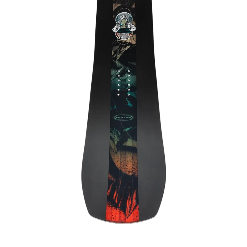 Das Mountain Twin  passt sich vielfältigen Sessions an: Fahren im Skigebiet, im Wald oder auf Freestyle-Modulen. Es ist bei hoher Geschwindigkeit komfortabel und bietet guten Pop für natürliche Sprünge und Übergänge. Ideal für Riders, die zwischen engagiertem Carving, flüssigem Switch und Freeride-Passagen wechseln. Der seitliche Grip bleibt auf hartem Schnee dank der Kantentechnologie zuverlässig. Sein richtungsweisendes Design, das eine Symmetrie bewahrt, kombiniert Wendigkeit mit richtungsstarker Kraft.