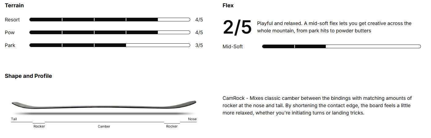 - Absorbnid Topsheet: dämpft Vibrationen für ein sanfteres Gefühl bei hohen Geschwindigkeiten oder unebenem Terrain.