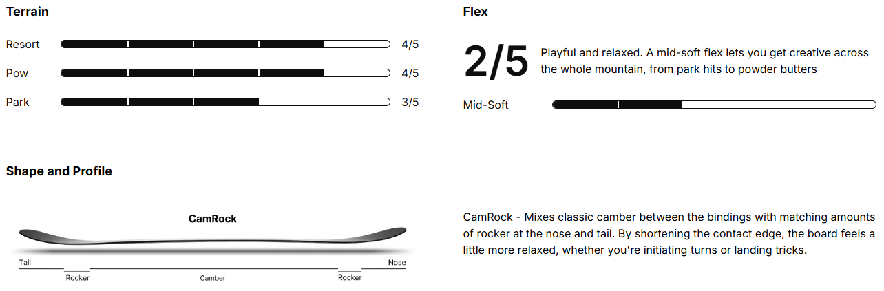 - CamRock-Profil: eine Kombination aus Camber und Rocker für mehr Toleranz und guten Grip in Kurven.