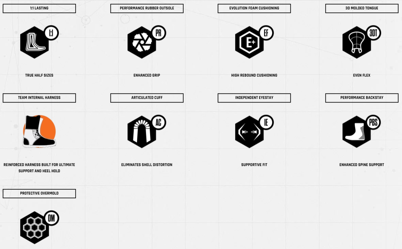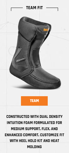 Um das Thermoformen des Intuition Foam Innenboots zu optimieren, leicht vor dem ersten Anziehen erwärmen oder einen Bootfitter konsultieren. Wählen Sie eine halbe Größe kleiner, um den Halt des Team Internal Harness optimal zu nutzen.