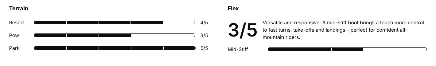 Entwickelt für Freestyle, Park und All-Mountain, garantieren diese Boots Grip und Fluidität. Ihre mittlere Flexibilität bietet Toleranz an Rails und Unterstützung beim Kanten. Die leichte Gummisohle sorgt für Haftung auf Schnee und Eis. Ideal für fortgeschrittene bis erfahrene Rider, die auf allen Terrains effizient unterwegs sein möchten.