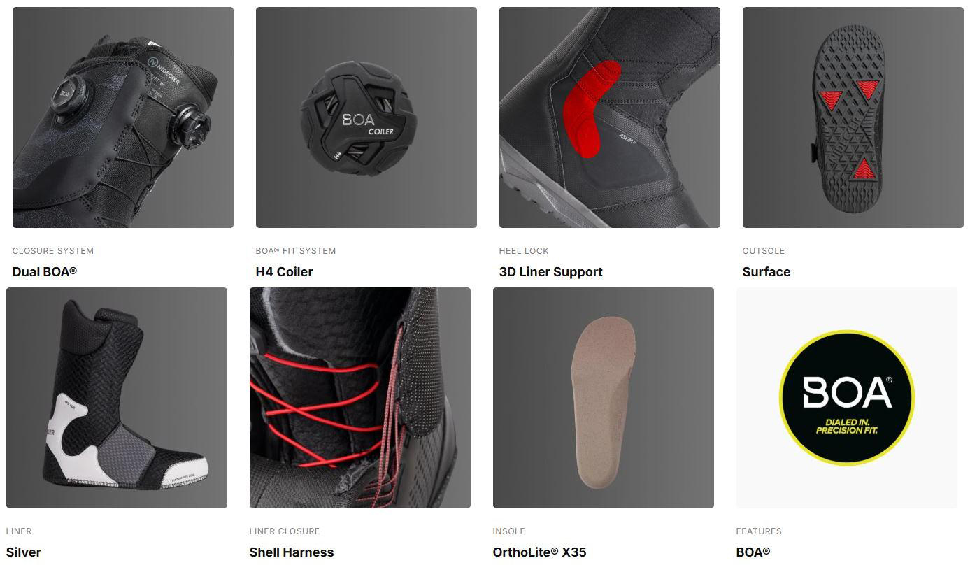 - Dual BOA-System: ermöglicht eine unabhängige Anpassung im oberen und unteren Bereich für eine präzise Passform vom Schienbein bis zum Fußrücken.