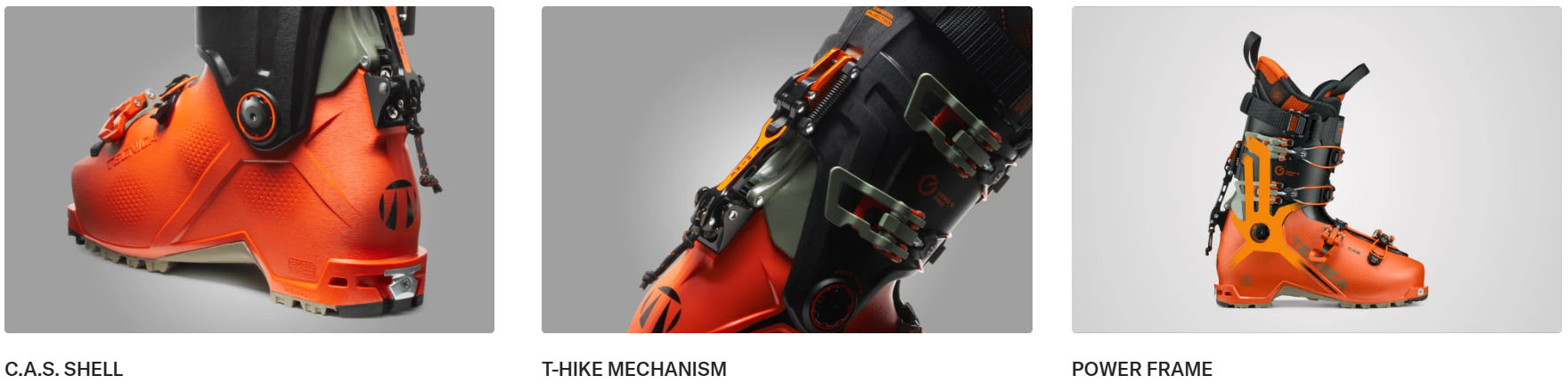 Die C.A.S. (Custom Adaptive Shape) Konstruktion aus Grilamid bietet eine kontrollierte Steifigkeit bei optimiertem Gewicht. Der co-injizierte Glasfaser-Schaft steigert die Kraft beim Abfahren. Das Free Move System ermöglicht ein Bewegungsspiel von bis zu 65°. Dank Quick Instep lässt sich der Schuh auch bei extremer Kälte leicht öffnen. Das Eco Design integriert nachhaltige Materialien in die Herstellung seiner Hauptkomponenten.