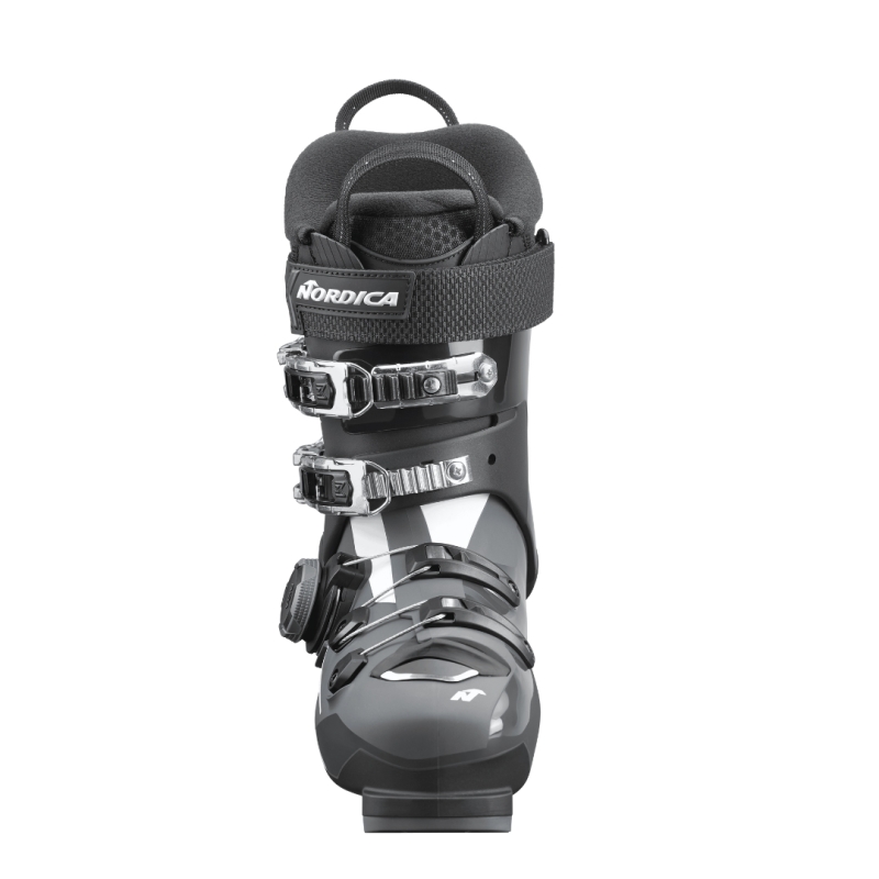 The NORDICA Sportmachine 3 75 W R BOA (GW) boots support female skiers in their progression on piste and all-mountain. Their wide interior volume comfortably accommodates broader feet without sacrificing control. The hybrid closure system combines precision with two aluminum buckles on the cuff and easy adjustment via the BOA Fit System at the shell's base. The Tri-Force shell ensures flexibility in forward lean and good power transfer. The Precision Fit W liner with Primaloft insulation provides thermal comfort and a soft touch. The GripWalk sole allows for a more natural and secure walking experience in the resort.