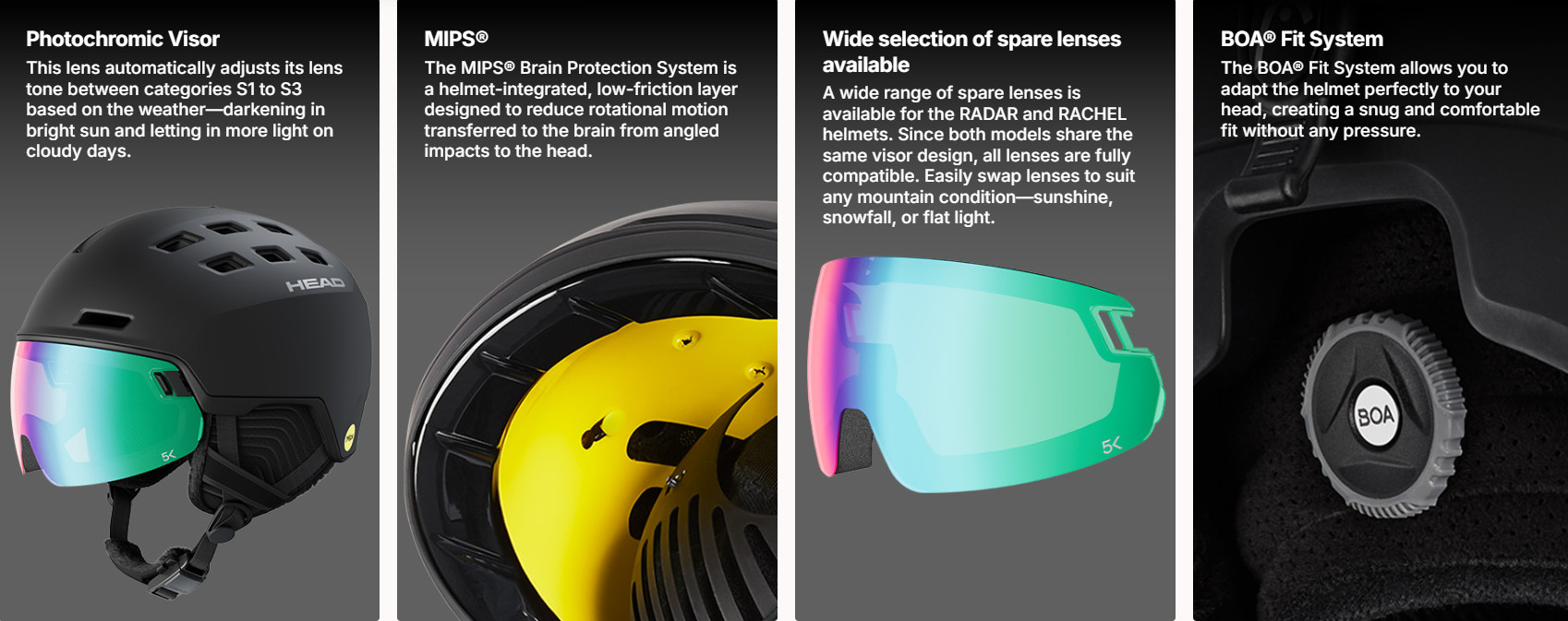 Perfect for skiing on-piste or off-piste, the Head Rachel Visor Helmet is suitable for female skiers of all levels. The dual-lens visor replaces standard goggles and adapts to varying light conditions. It offers an all-in-one solution to ski clearly, comfortably, and safely, without compromising on aerodynamics or freedom of movement.