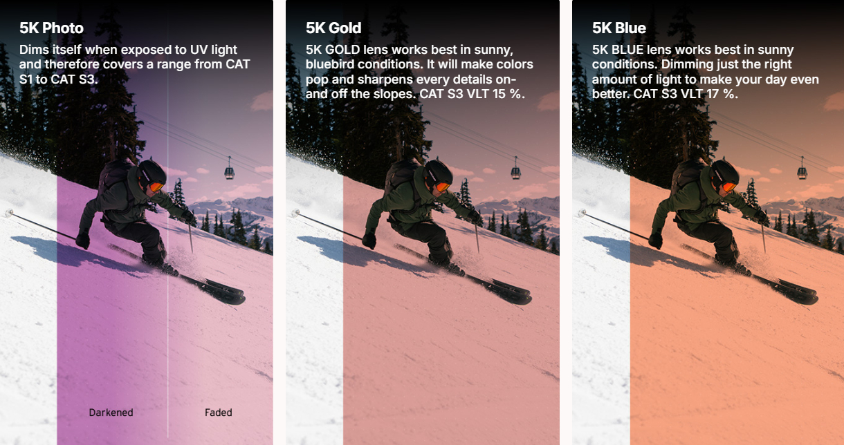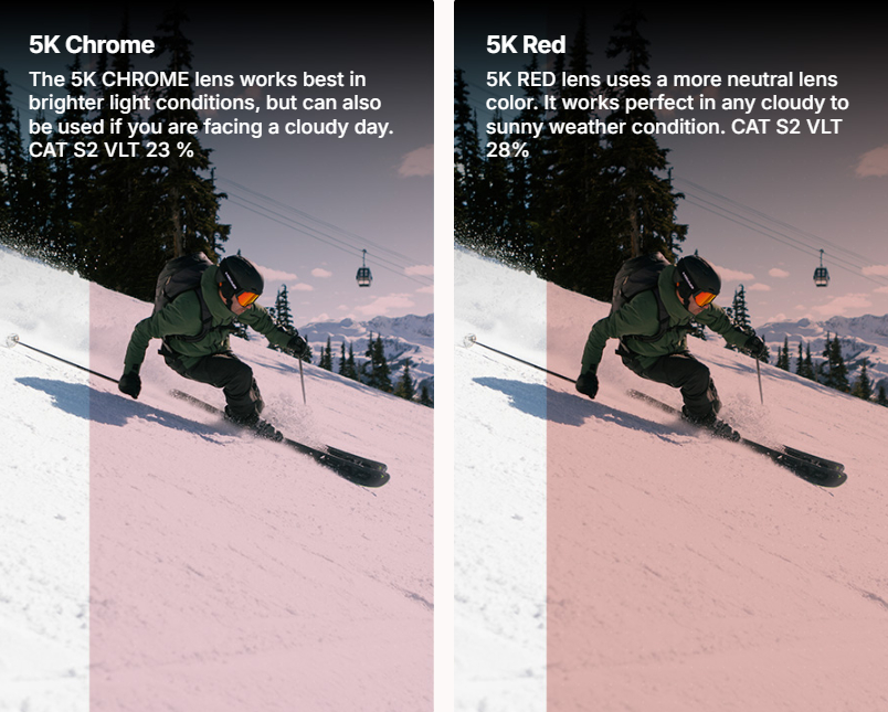 - 5K Lens Technology: improves contrasts and terrain detection for clearer vision on snow.