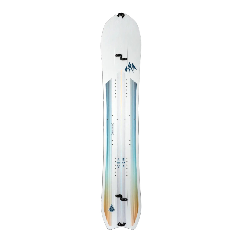 The JONES Stratos Splitboard features High 3D Contour Base 3.0 technology for improved maneuverability in deep snow. Its Ultra Split Core utilizes a mix of lightweight and durable woods. Biaxial fiberglass enhances torsional strength, and the BComp carbon and flax stringers ensure better energy transfer. The Karakoram Ultra Clips 2.0 with Tip-Lock provide precise and rigid retention between the two parts of the board.