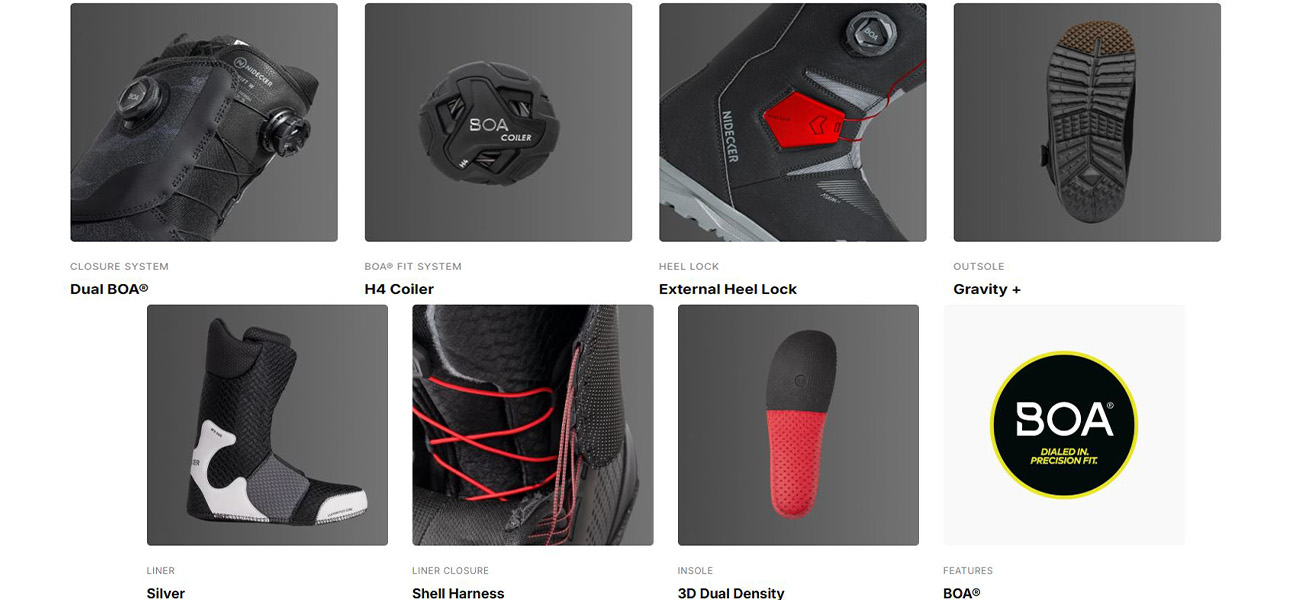 For optimal support, start lacing from the bottom of the BOA® and adjust the top according to your preferred flex. Thermoform the Silver Liner after 2-3 sessions for ideal adaptation. Stick to your usual boot size, Nidecker fits true to size.
