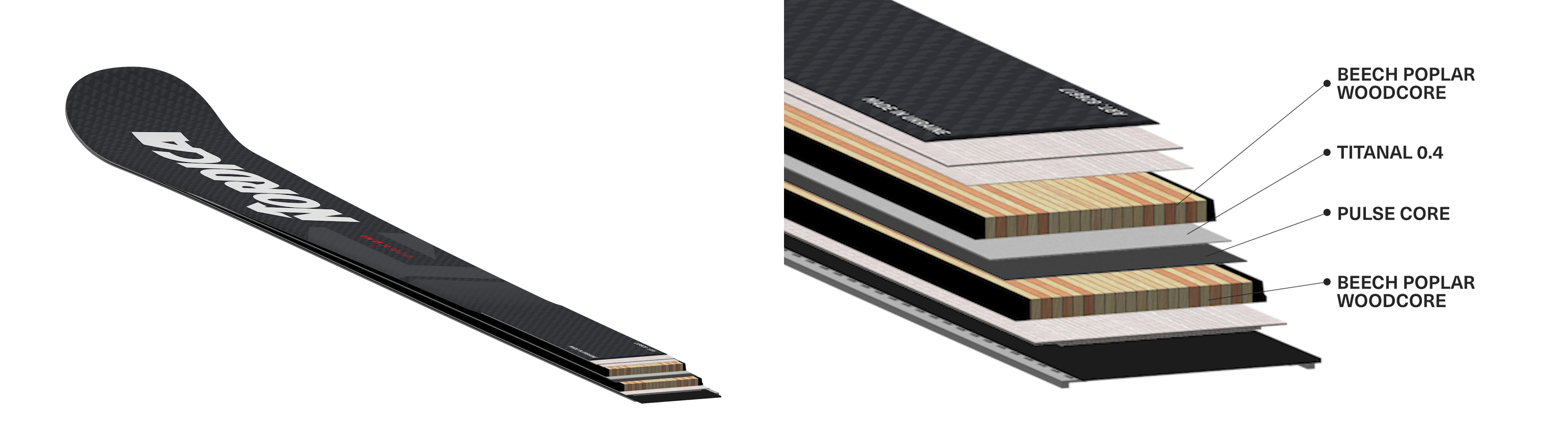 La technologie Energy TI Double Core associe un noyau bois renforcé de deux plaques métalliques et d’un insert Pulse Core absorbant. Elle optimise la précision de conduite et amortit les vibrations en terrain dur. Le Multi Radius Sidecut crée un ski polyvalent en virage court ou long. Enfin, le Dynamic Race Shovel adoucit l'entrée en courbe pour une accroche rapide sans brutalité.