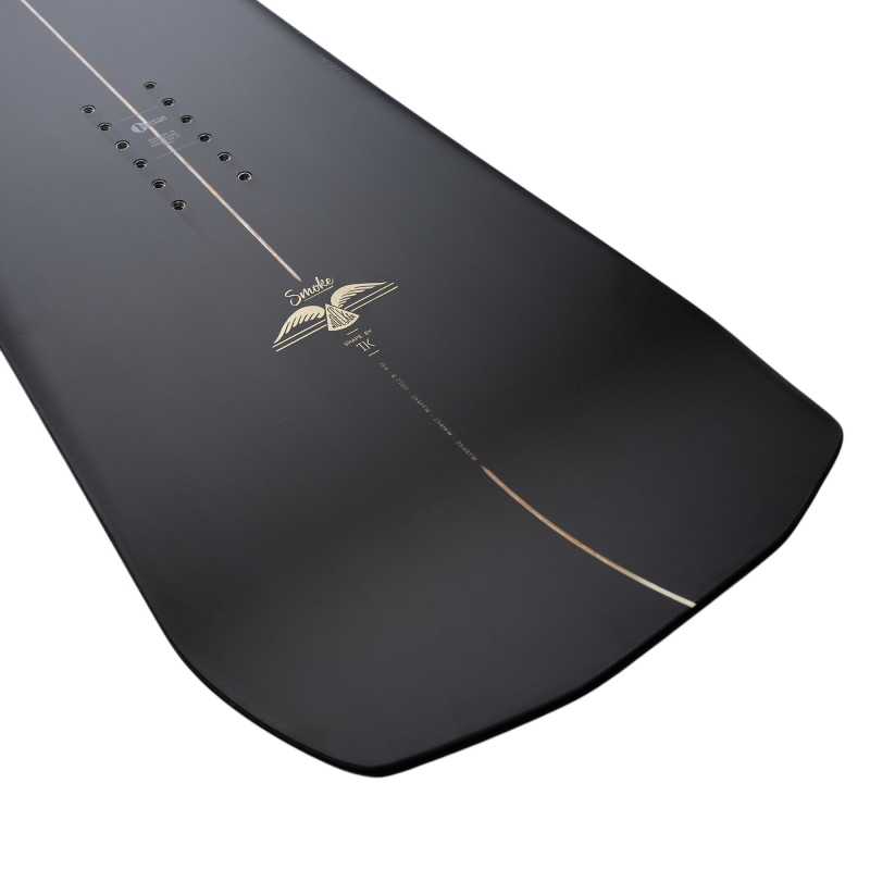 Le Snowboard NIDECKER The Smoke propose un programme directionnel, destiné aux riders à la recherche de précision en terrain varié. Son profil Surfy CamRock associe un cambre classique sous le pied avec des rockers progressifs en spatules, offrant maniabilité et flottaison. Son flex rigide permet une accroche fiable sur neige dure et une réponse immédiate en virage engagé. La longueur de carre effective généreuse garantit un appui optimal lors des courbes appuyées. L'effilement marqué en spatule arrière et le setback prononcé stabilisent la planche en hors-piste tout en améliorant les transitions. Conçue pour les riders de gabarit moyen à fort, elle excelle sur grandes pentes, neige tassée ou fraîche.