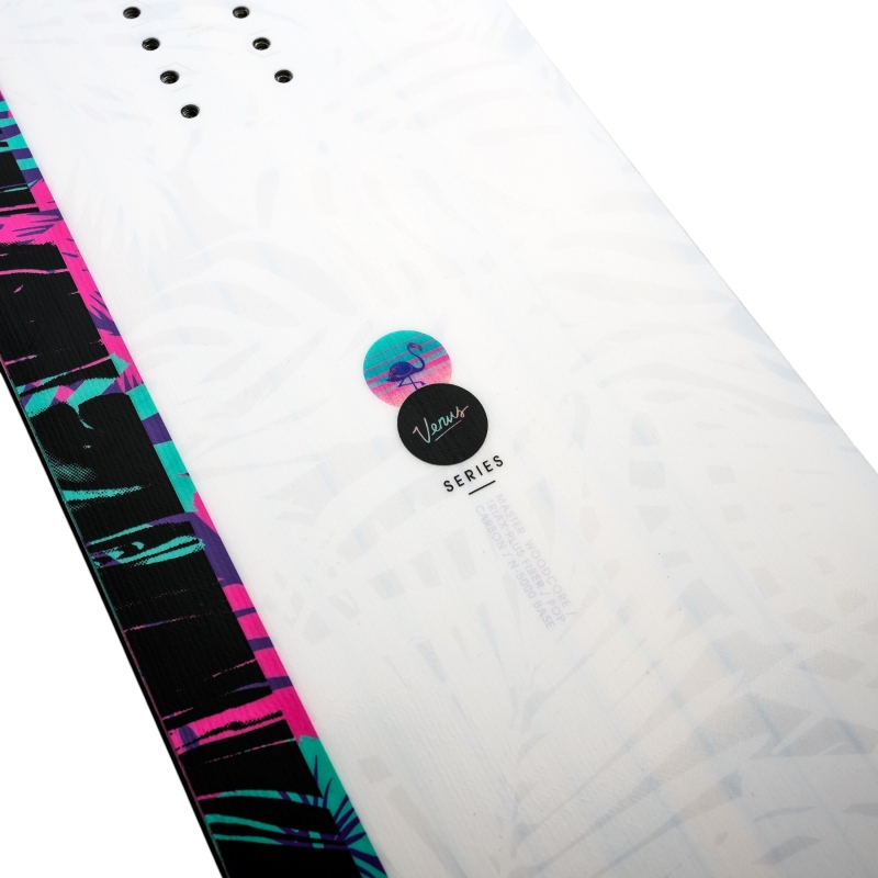 La Snowboard NIDECKER Venus associe une construction Premium Sandwich enrichie de stringers en carbone pour une meilleure réactivité. Le Topsheet Absorbnid réduit efficacement les vibrations pour plus de confort à haute vitesse. Le noyau Master Core mixe peuplier et paulownia, équilibrant légèreté et solidité. La fibre Triax Plus en trois directions améliore la stabilité sur tous les axes. La semelle N-5000 Extruded assure robustesse et facilité d’entretien sur la durée.