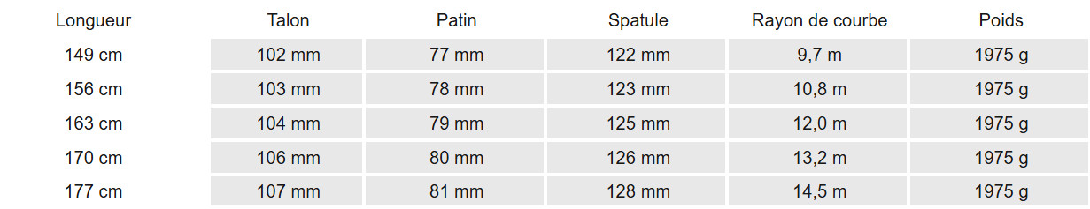 - Profil Allride Rocker : favorise une accroche intuitive en entrée de courbe et augmente la maniabilité dans les transitions rapides.