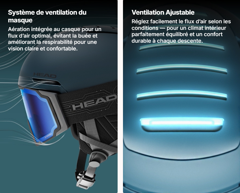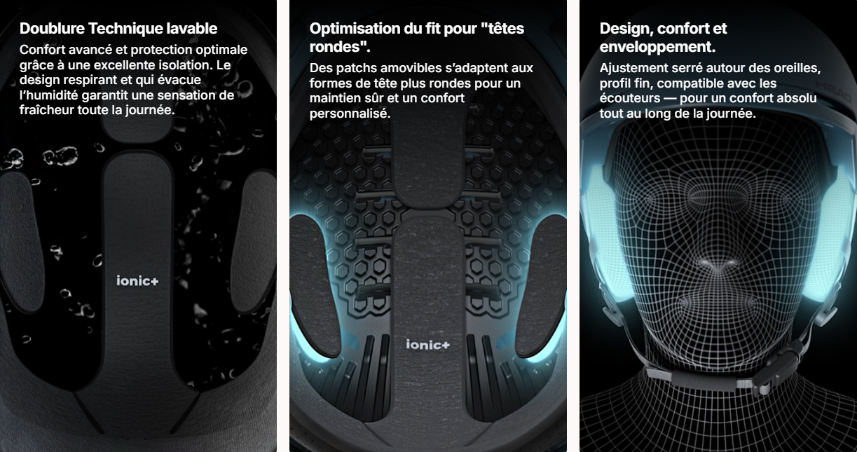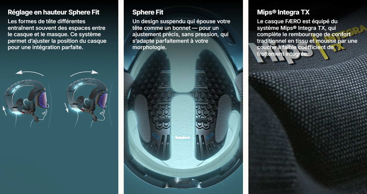 - Système Sphere Fit : ajuste la coque sur la tête en hauteur et en circonférence pour un maintien personnalisé.