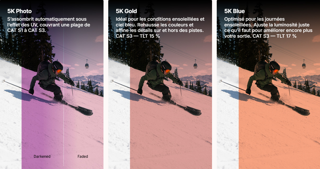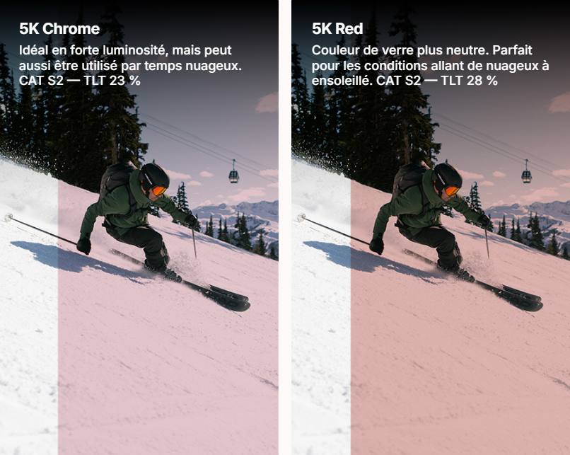 - Technologie 5K Lens : améliore les contrastes et la détection des reliefs pour une vision plus claire sur neige.