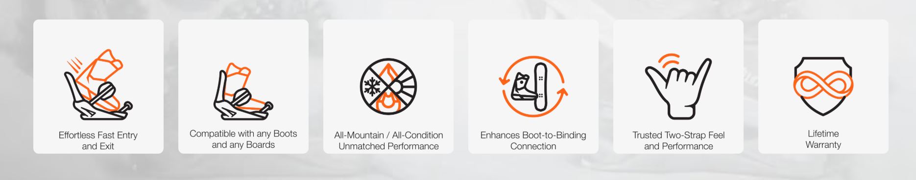 • Système d’entrée rapide FASE : permet de chausser et déchausser rapidement sans manipulation supplémentaire, pour rester concentré sur le ride.